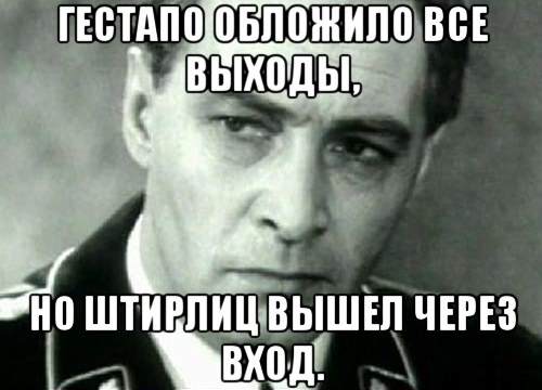 "Гестапо обложило все выходы, но Штирлиц вышел через вход!". © )))