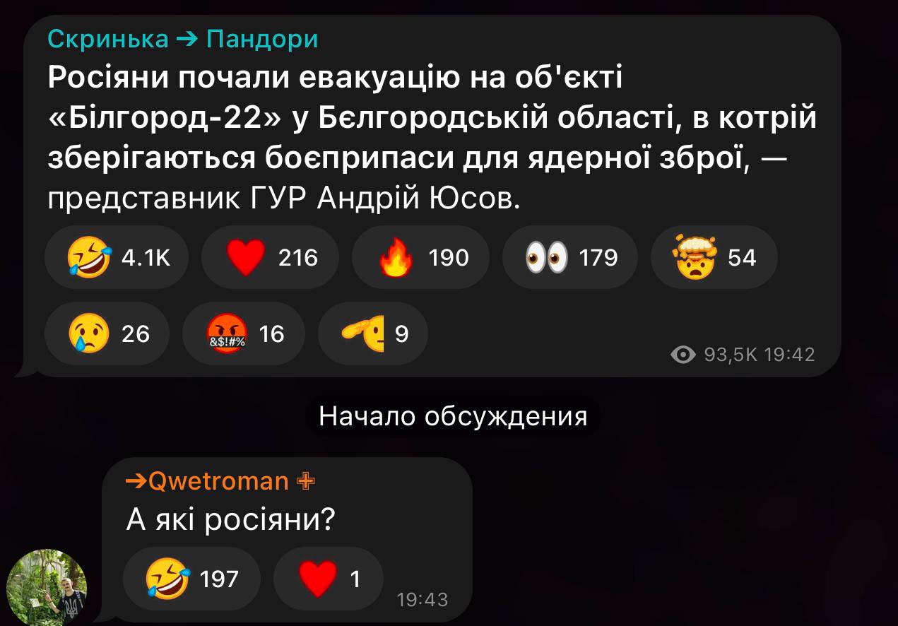 - Россияне начали эвакуацию на объекте "Белгород-22"...на котором хранились боеприпасы для ядерного оружия...