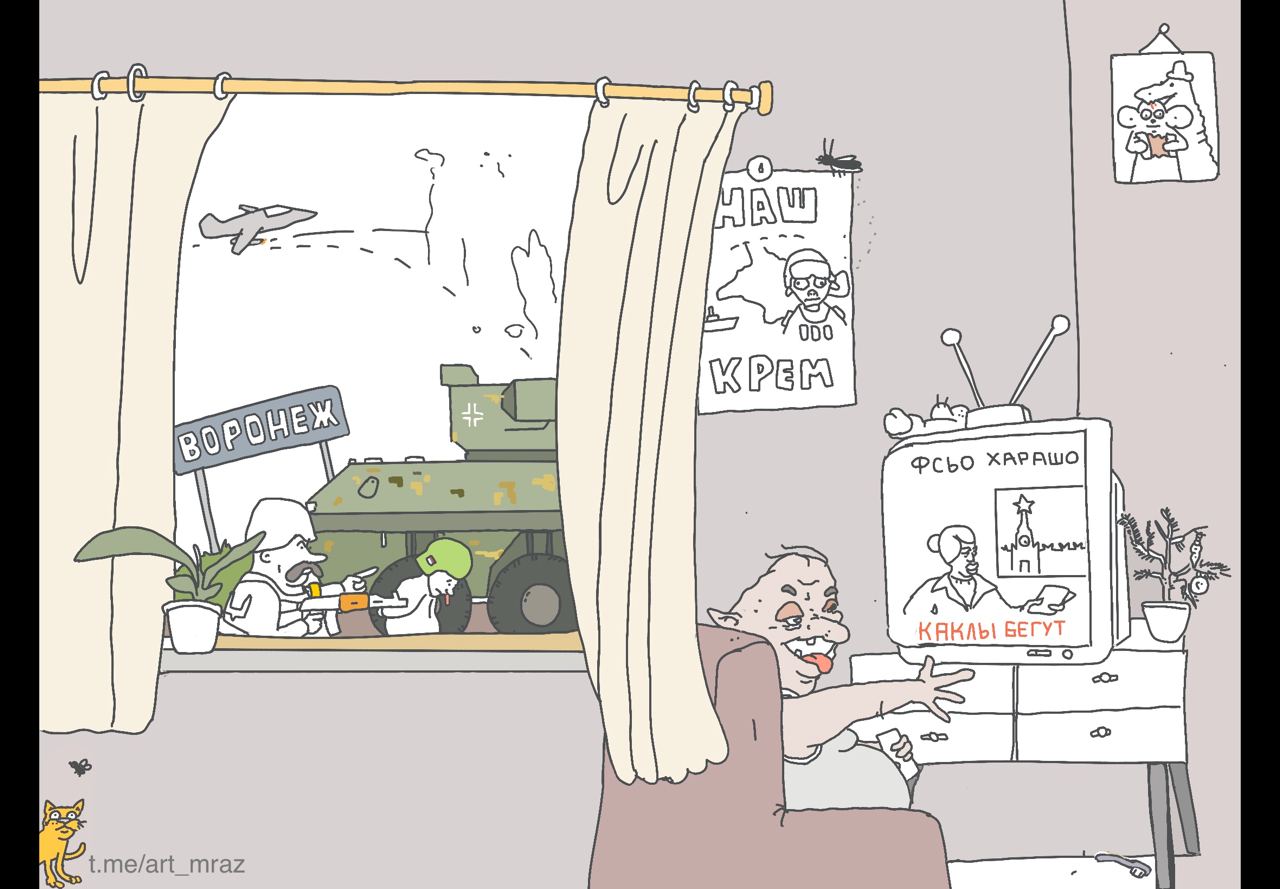 Еще прикольней вера рядовых россиян в то, что Украина вот-вот собиралась россию завоевать, но мудрый путин* это узнал, и её на полчаса опередил. Это ж кто, опасаясь бомбежки и военного вторжения, держит бесценное уязвимое ядерное оружие на границе с врагом вместо того, чтоб срочно вывезти на другой конец страны? Это ж кто, опасаясь бомбежки и военного вторжения, полгода вальяжно стаскивает технику, боеприпасы, топливо вплотную к границе, выстраивает в боевые порядки, расставляет боевые самолеты на аэродромах на виду у всего мира вместо того, чтоб отводить как можно дальше и прятать по кустам и подземельям? Да при нападении врага это все за пять минут теряется, что и случилось в 1941-м. Так ведет себя только человек, который абсолютно точно знает, что ни при каких условиях на него никто не нападет.
