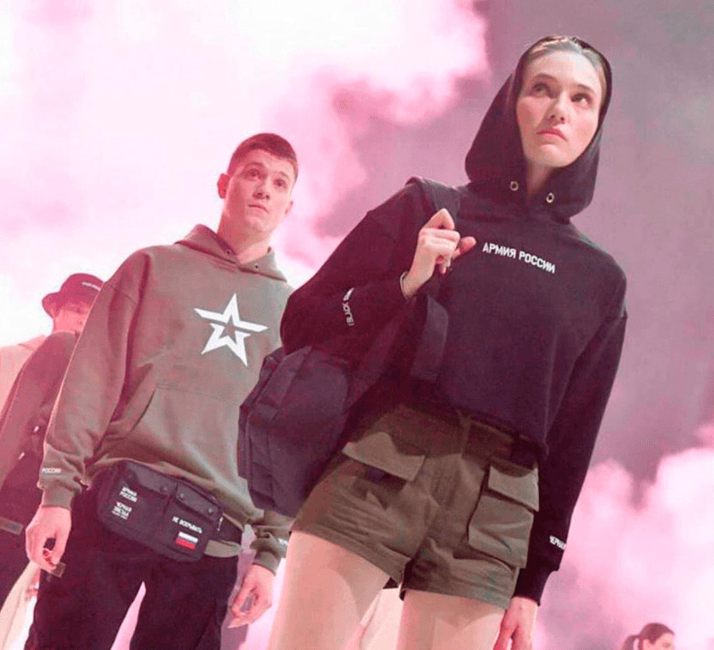 Представители "Военторга" рассказали, что именно вдохновило создателей коллекции: "В основе компаний общие ценности: убежденное лидерство, патриотизм, внимание к деталям и полная уверенность в каждом следующем шаге". (Отсюда.)