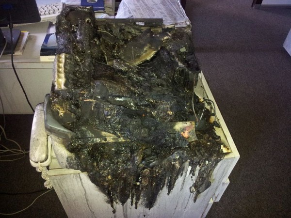 У знакомого на работе происшествие. Лазерное МФУ Panasonic, модель KX-fb813. Ночью кто-то прислал факс. МФУ от возмущения загорелось - где-то в районе печки или панели управления. Моделька очень старая, вообще давно могла сдохнуть. Но загораться-то зачем?