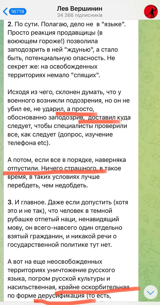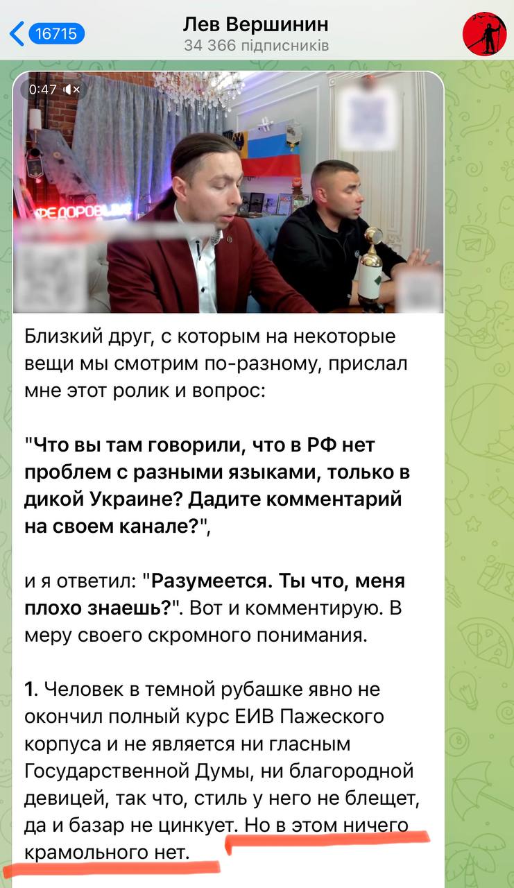 Живущий в Испании Вершинин рассказывает, что забирать на подвал говорящих на украинском на оккупированных территориях - нормально.