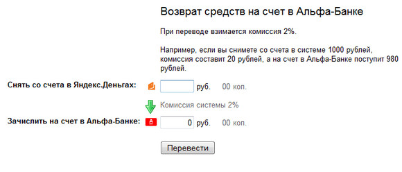 Вывод Яндекс.Денег на привязанную к кошельку карточку Альфа-банка
