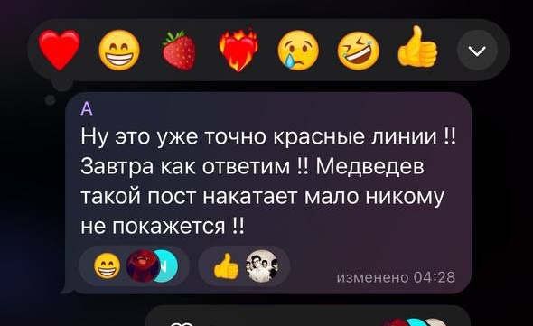 "В случае, если что-то подобное произойдет, для них всех там одномоментно наступит Судный день - очень быстрый и тяжелый. Укрыться будет очень сложно. Но тем не менее они продолжают провоцировать такими заявлениями общую ситуацию", - сказал зампред Совбеза РФ.
