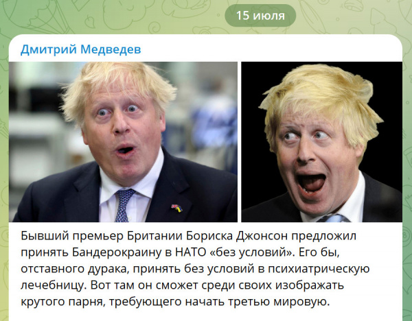 "Отдельные экзальтированные кровавые клоуны, которые там выскакивают периодически с какими-то заявлениями, еще и пытаются угрожать нам - имею в виду нападение на Крым и так далее", - отметил замглавы СБ РФ на встрече с ветеранами в Волгограде, отвечая на вопрос о ходе специальной военной операции. Как подчеркнул Медведев, последствия таких действий со стороны Украины очевидны.