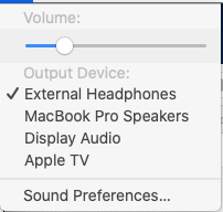 На маке это тоже делается одним кликом по значку динамика в правой части menu bar. Дополнительные настройки звука открываются по нажатию на Sound Preferences...