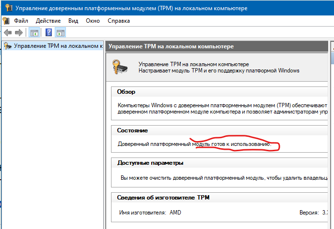 НО - проверяю я штатной софтиной от MS - и она кричит об отсутствии TPM