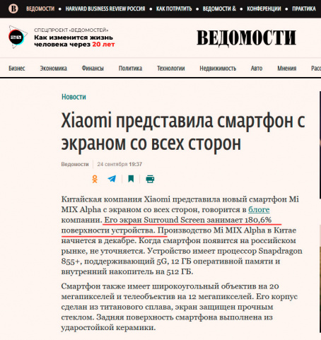 Ну это же концепт, который выйдет сильно ограниченной серией. Плюс у Xiaomi вся линейка Mi Mix — своего рода экспериментальная, с нестандартными решениями. То камеру из «чёлки» уберут в «подбородок», то сделают смартфон-слайдер, то вот теперь экран в 180%.