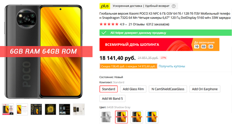 Отдельной графой идет Tmall: там даже сверхпопулярный poco x3 по минимальной цене можно купить до сих пор. Но цена эта, конечно, не 11 тыс и даже не 14. Но зато официальная гарантия, доставка за 2 дня и прочее..
