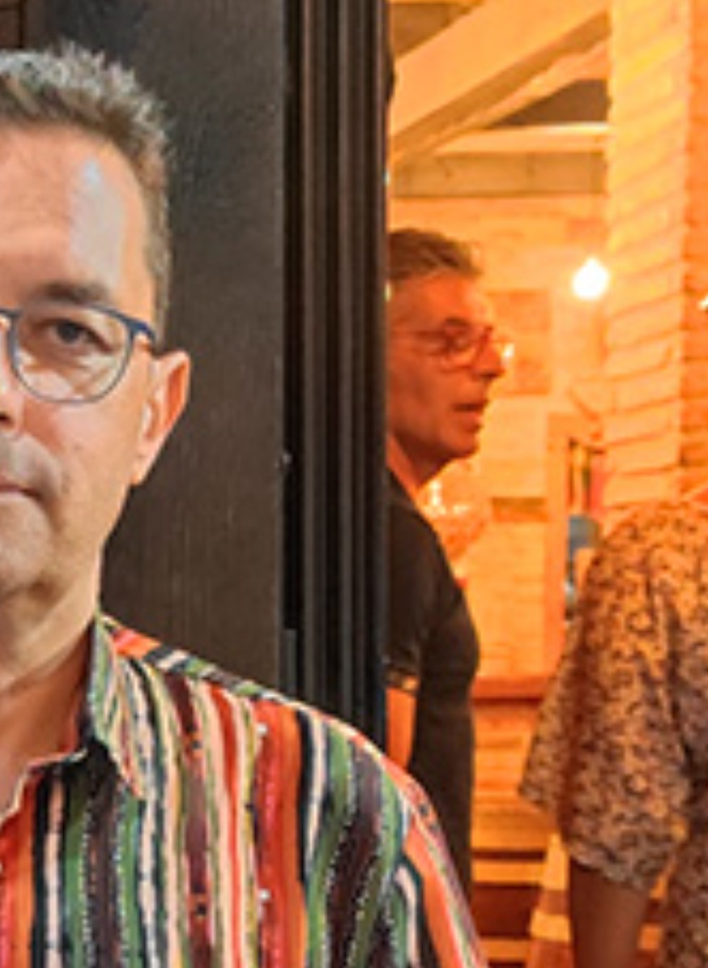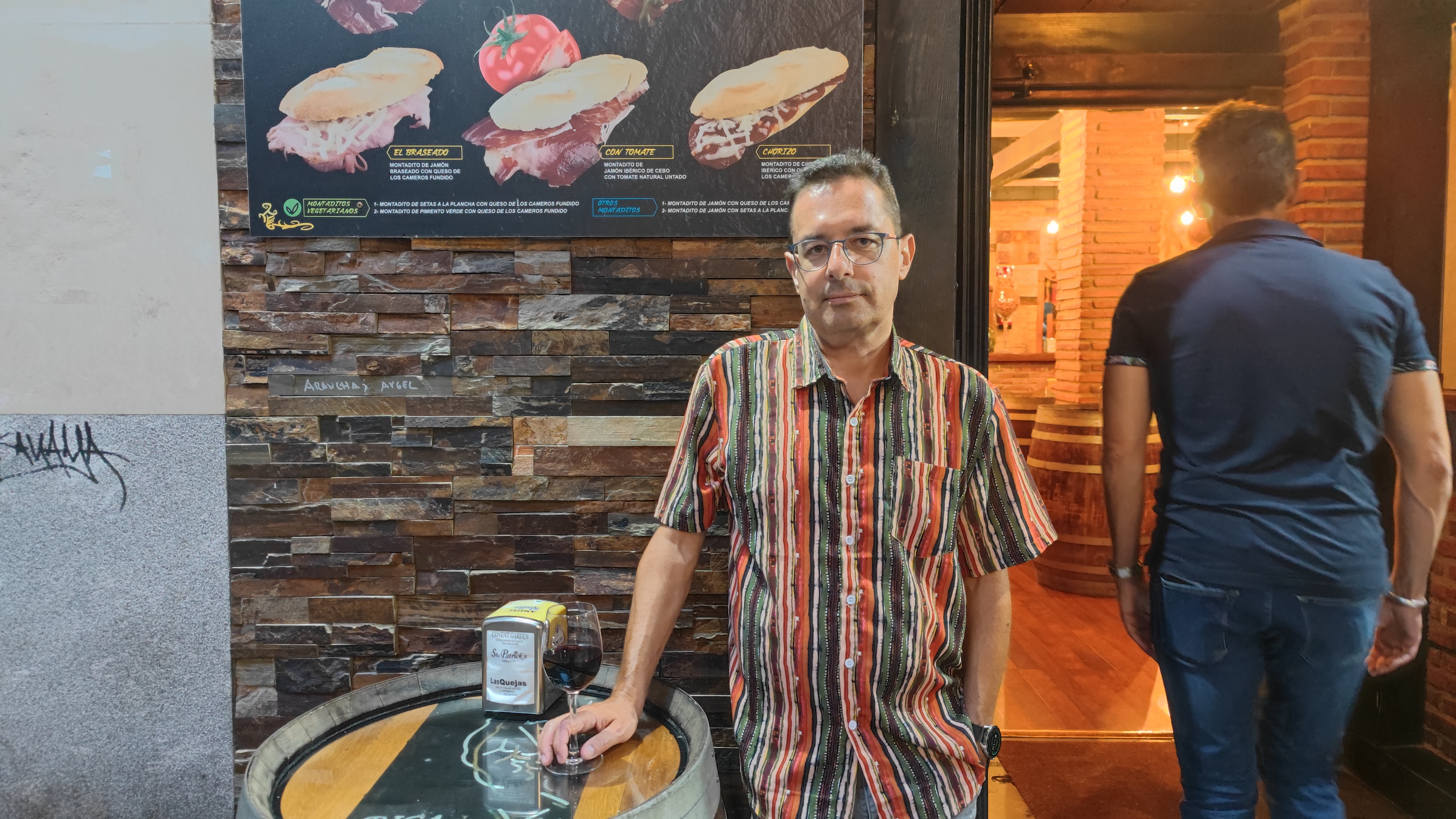 В качестве иллюстрации - это я на улице Лаурель: пробился в один из кабачков, взял бокал вина, вышел на улицу и стою у бочки, которая служит столиком - это прям классика!