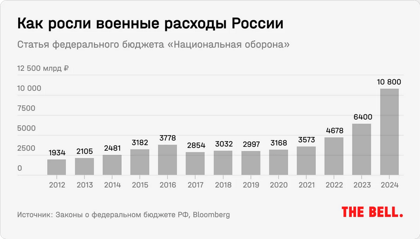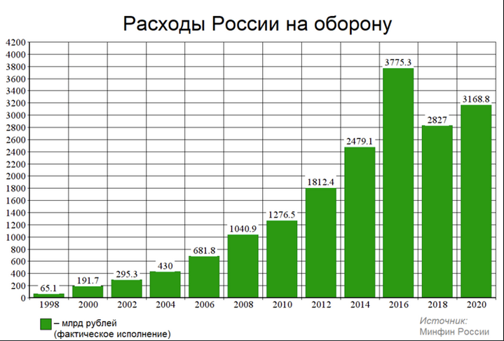 Здесь только официальные/полуофициальные данные о космическом темпе роста военных расходов бюджета РФ, обычно они значительно меньше реальных: