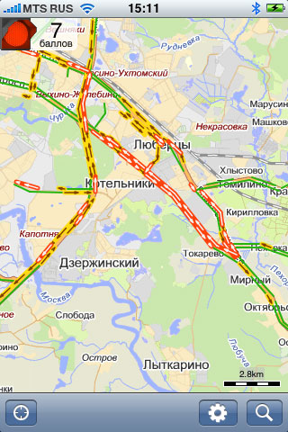 Оказывается, уже дней десять как вышла новая версия Яндекс.Пробок для iPhone. Если кто пользуется старой версией - обязательно поставьте новую. Она теперь полнофункциональная и почти не отличается от версии для WM. (Раньше была сильно урезанная, так что я пользовался программой "iПробки", которая использовала яндексовский движок.) Пробки для 23 городов, теперь есть Подмосковье, умеет определять местоположение и так далее.
