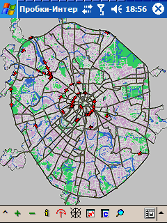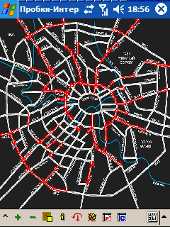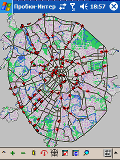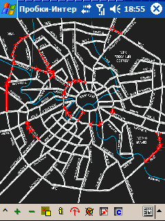 Схема СМИлинк в одном направлении (там еще видно миганием, где затрудние, а где пробка, но на скриншоте не показать):