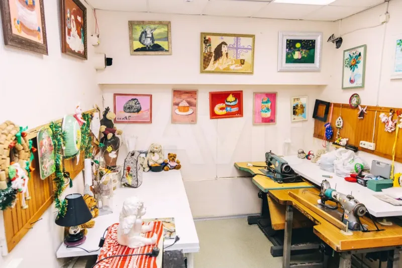 судя по количеству швейной техники - на 3-4 рабыни. они и красили. но место освободилось - может кому надо...