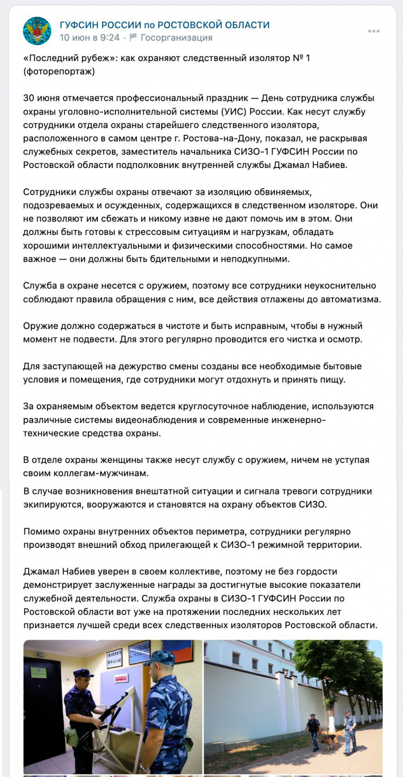 Также настаиваем на отстранении от исполнения обязанностей первого заместителя директора ФСИН Валерия Бояринева, курировавшего оперативную работу, ГОУ и ГУФСИН РО.