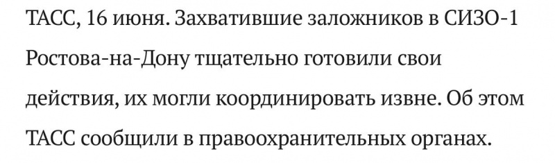 От события в ростовском СИЗО пованивает желанием «резко перебить» новостную повестку от Швейцарского Саммита.