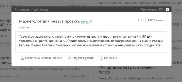 В случае если на бирже будут попытки оставить мошенническое резюме или разместить «чернушный» заказ – такие объявления убираются в считанные минуты. Модерация здесь круглосуточная.