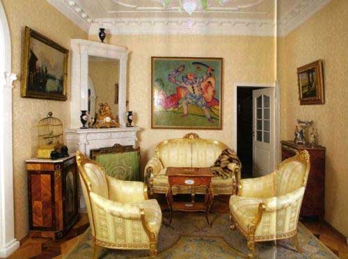 Кухонька - неплохая, а вот остальное уж как-то совсем по древнему выглядит. Я ее апартаменты представляла себе более креативными. Очень много картин, действительно, больше похоже на музей а не на жилое помещение