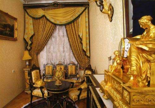 Последняя комната, та которая в золоте, узкая как шкаф(шириной в окно). И даже там захламили. Жить то как в этом музее?
