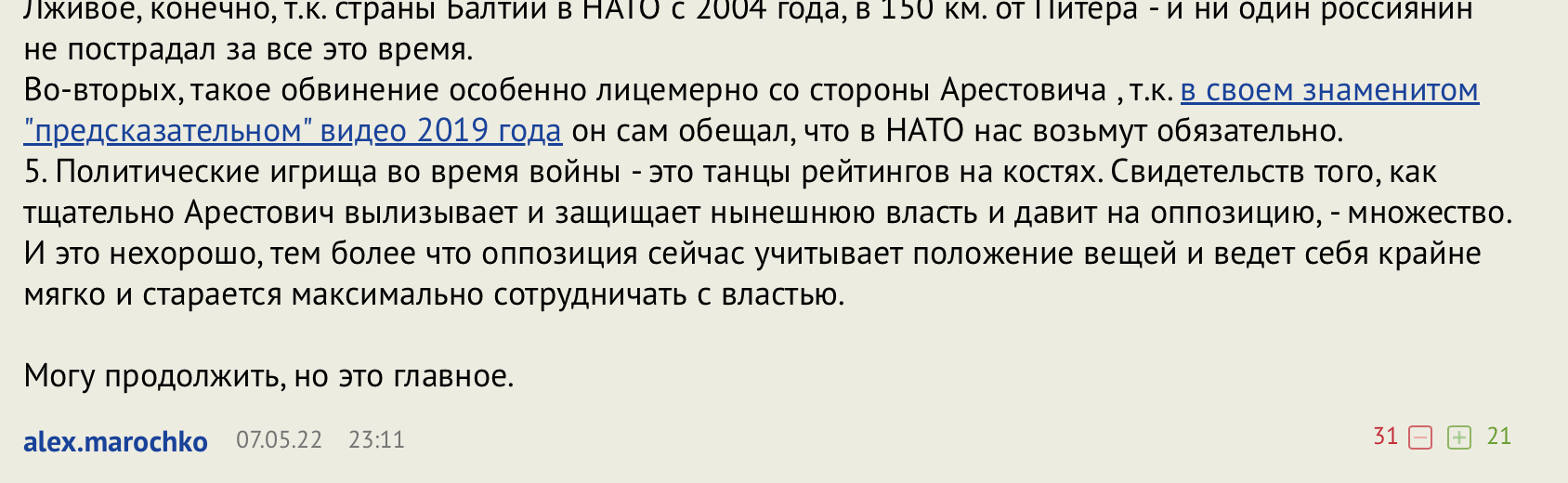 Что касается Арестовича, то перестал его слушать вообще, после того как он начал критику воюющей Украины.
