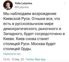 Можно припоминать все обиды, нанесеные Пушкиным и Бродским, справедливо указывать на российский шовинизм, затыкать рот всем, кто не сжег русский паспорт, но факты-то от этого не изменятся? Воевать-то легче не станет (при том, что и Латынина всем сердцем желает победы Украине). Рано или поздно это несоответствие реальности заявленным целям и ожиданиям придется признавать? Сейчас Латынина про это спрашивает, но завтра и у украинцев такой же вопрос возникнет.