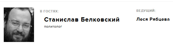 Но сегодня, отправляясь на прогулку и заправляя в планшеты космические карты в виде подкастов, вдруг вижу, что в "Особое мнение" пришел Станислав Белковский, а разговаривает с ним - Леся Рябцева. О, думаю, вот это попадос!