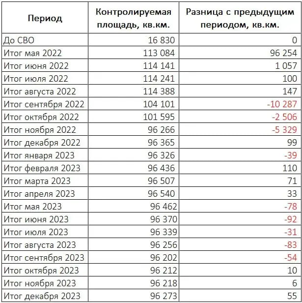 Повторю: "За 2023 год россияне захватили больше территории чем Украина смогла вернуть".