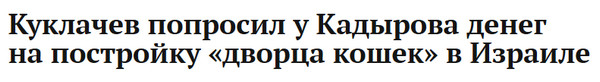 Недожали журнализды. Надо так: "Куклачев потребовал у Рамзана Кадырова денег на организацию тюрьмы для свободных еврейских кошек".
