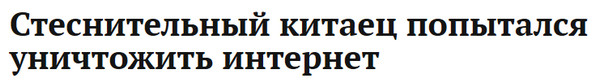 Убытки от разрушения интернета этим гением составили 15 тыщ баксов. Дешевый китайский интернет, однако.