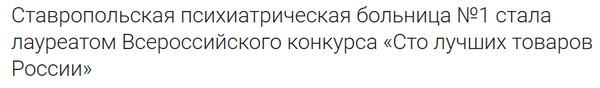 Если ставропольская психушка попала в лауреаты премии - значит там хорошо и качественно работают. Московская больница им. Кащенко в списке есть? Если нет - тогда я всё понял правильно?