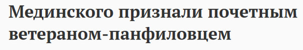 Любопытно, что гугл на запрос московская группа ветеранов-панфиловцев дает только эту новость. Не удивлюсь, если Мединский там и почетный председатель этой группы.