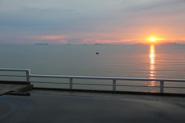Солнце садится за остров. Жаль, в вашем раю можно было бы зеленый луч наблюдать тихими тайскими вечерами:)