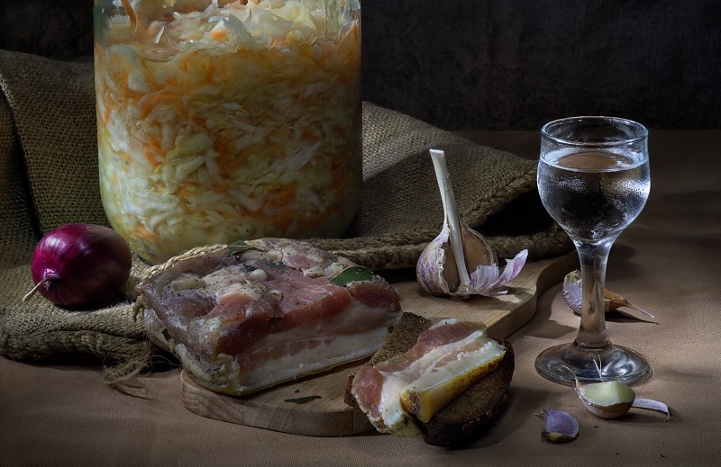 В общем, да. Капуста, сало, чеснок, лук, хлеб и водка.