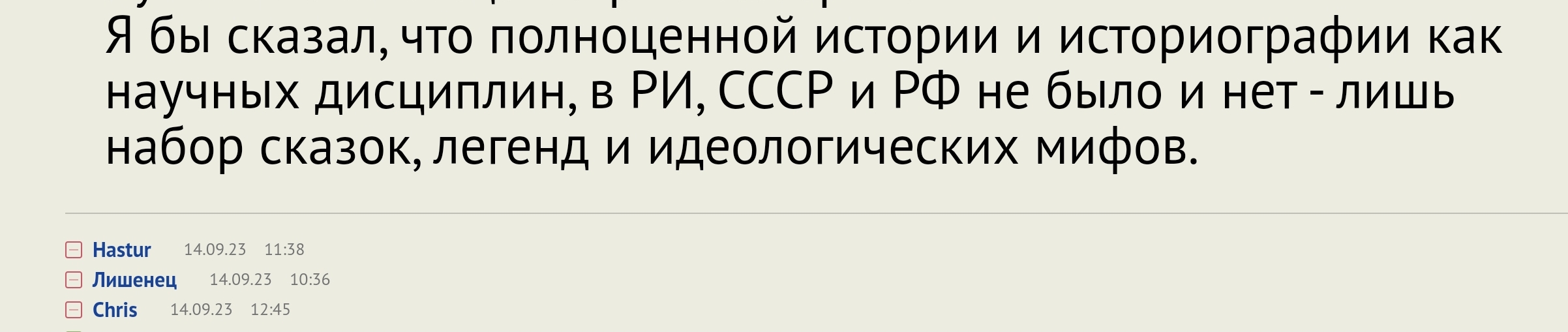 Я бы сказал, что полноценной истории и историографии как научных дисциплин, в РИ, СССР и РФ не было и нет - лишь набор сказок, легенд и идеологических мифов.