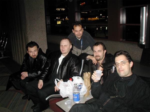 А вот оригинал фото: небольшая группа интеллигентных и тонко чувствующих людей пьет водку в аэропорту Лас-Вегаса. Это мы в январе 2002 года, когда тусовка с моего форума встречалась в Лас-Вегасе.