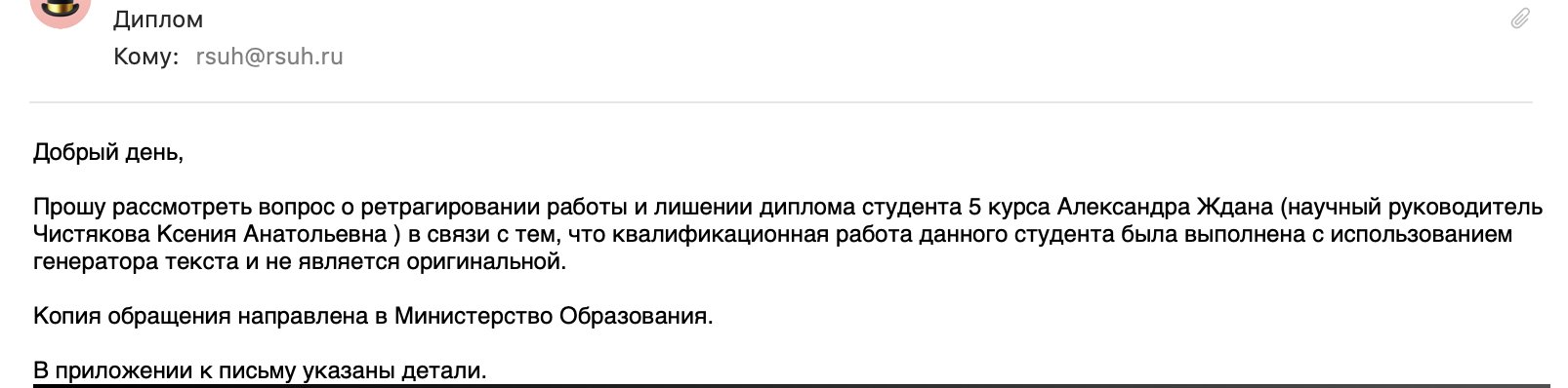 Любопытная история. Пользователь Твиттера Just A защитил диплом, написанный нейросетью ChatGPT. И он в своем Твиттере поделился историей о том, как это было.