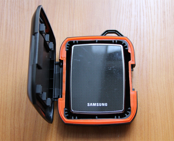 Однако если у вас вдруг диски других производителей, футляр им так же подойдет - вот, например, самсунговский диск в футляре. Он встает чуть менее плотно, чем диск WD, однако не болтается и для него также вполне можно использовать этот футляр.