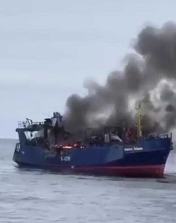 Вообще-то, это руский гражданский корабль, траулер с рыбаками, и он был поражён руской же противокорабельных ракетой.