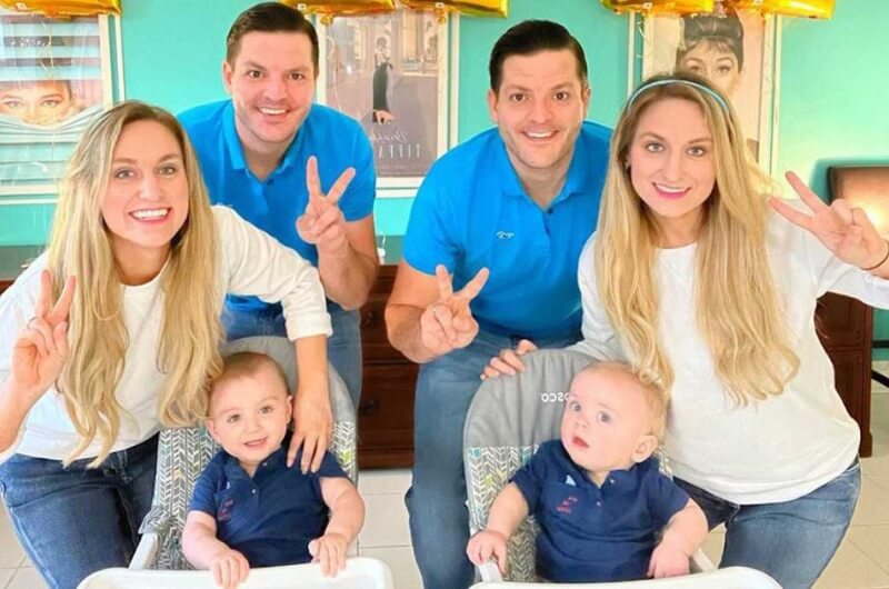 Мало того, они решили завести детей в одно и то же время, и недавно у них появились дети: у одной пары - сын, и другой пары - дочь. И они тоже очень похожи.
