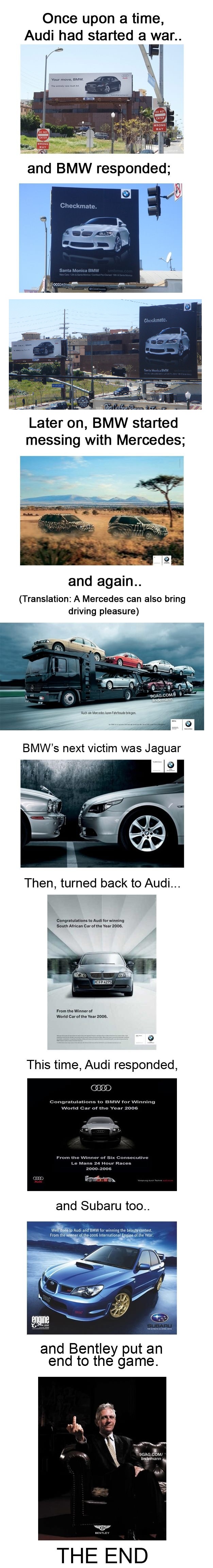 фольксваген 10 лет назад отличился в плане разрушения (буквального) машин соперников в рекламе. Mарки и модели не назывались, но были легко идентифицируемы.