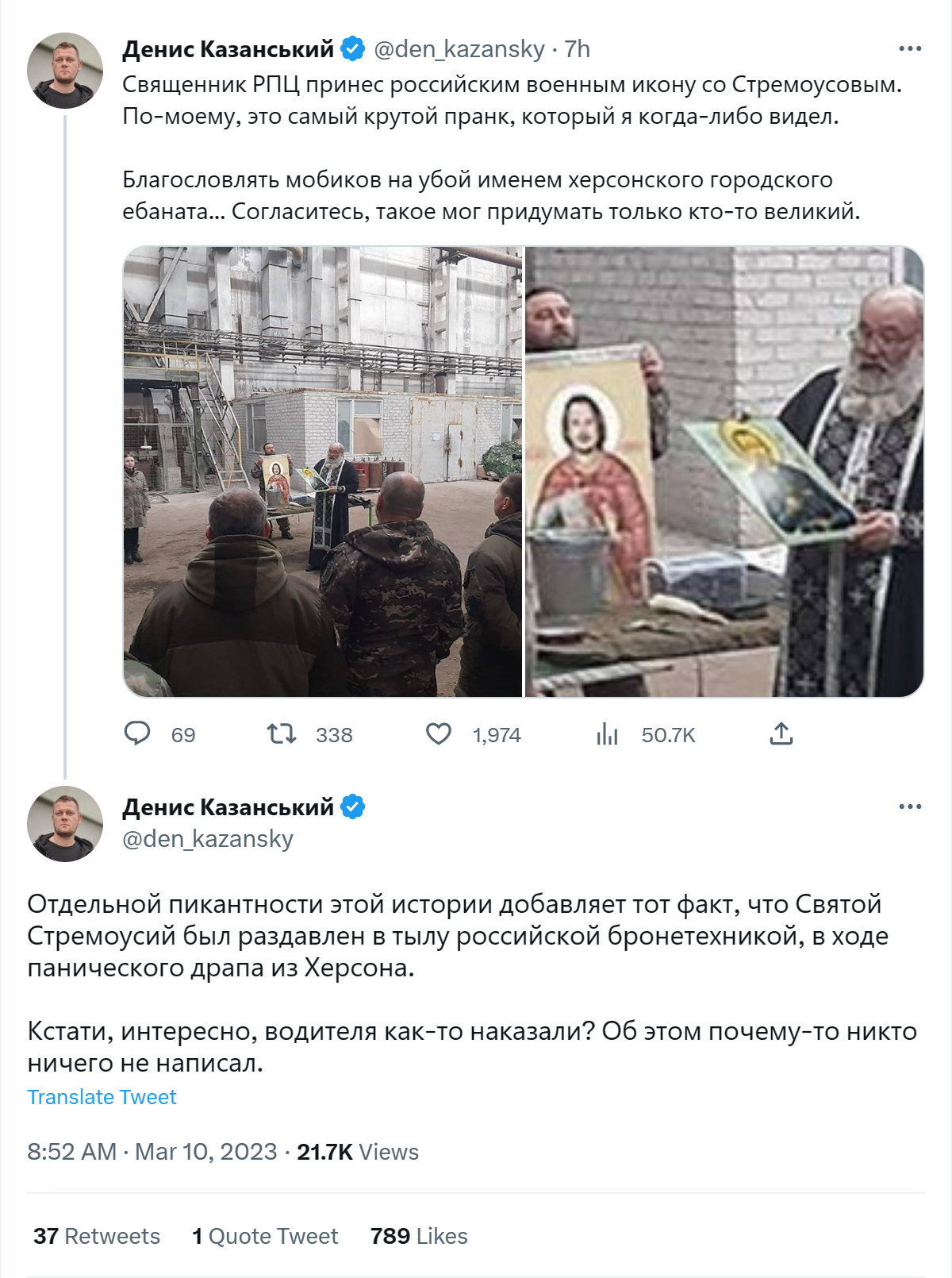 Пункт Б), кстати, даже в их людоедской логике, не работает. Если погрузиться в пучины православия, то можем найти, что Киево-печерская лавра почитаема так потому, что является одним из уделов Богородицы. Третьим, если быть точным (из четырёх). А первым уделом Богородицы является страна Иверия. Она же царство Картли, она же Сакартвело. Так что, ежли они такие православные, то на территории Грузии вообще перышко не должно упасть, не то, чтобы бомбить Тбилиси.