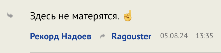 Где вы нотации усмотрели? Вы больной, что ли? Я лишь сказал, что маты здесь запрещены. Пруф прилагаю.