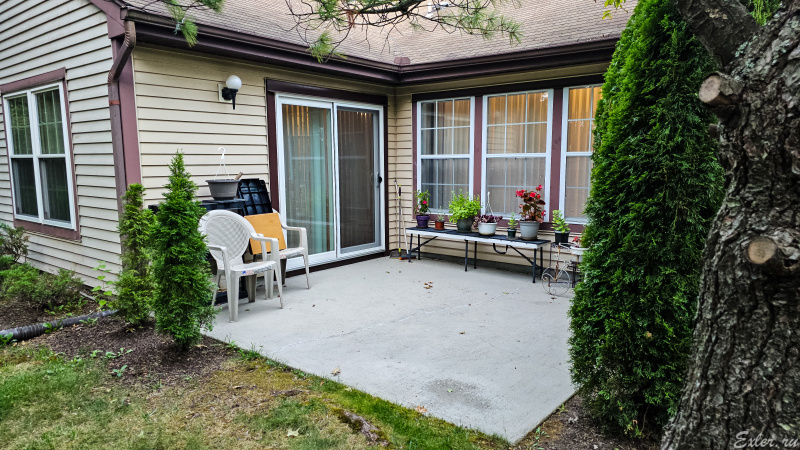 Позади каждого такого дома - небольшое патио, и дальше идет довольно большая территория участка, где можно устраивать барбекю, всякие игры на траве и так далее.