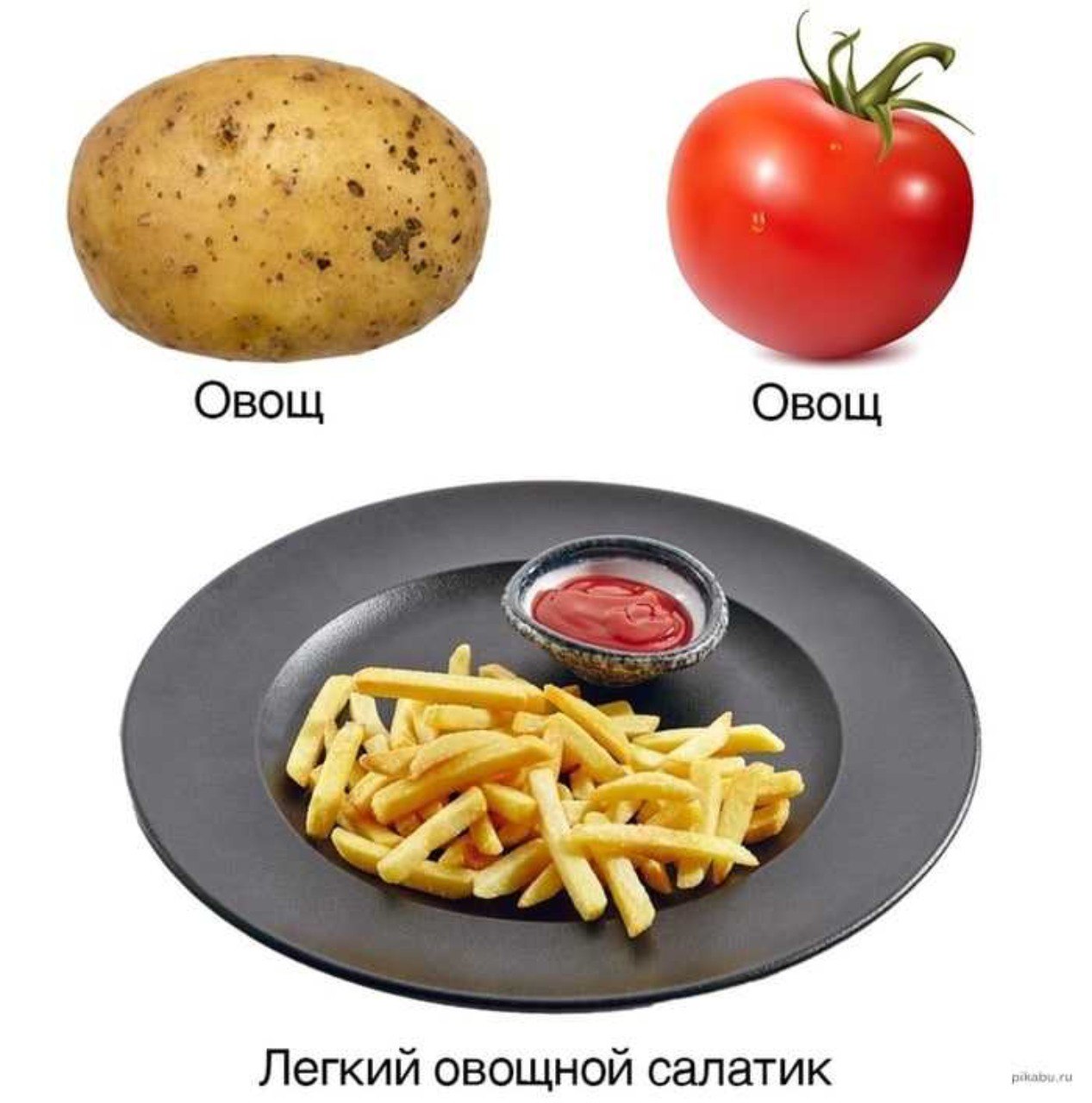 Меня всегда интересовало - почему котлета, жаренная картошка и ломоть хлеба это здоровая пища, а картошка фри, булка, салат, огурец, лук и котлета - нет.