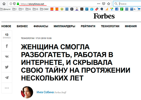Вот, например, зацените - очередная реклама "волшебного заработка в Интернете". Посмотрите как они нагло косят под Forbes. И только парашют (реальный адрес) выдавал в Штирлице русского шпиона.