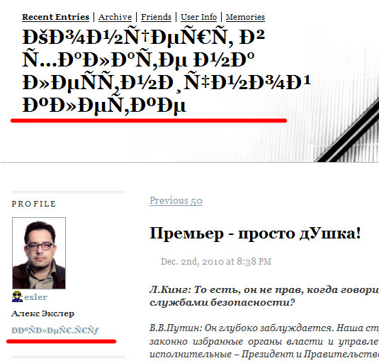 СУПец в ЖЖ что-то опять радикально улучшил. Я оформление блога не менял минимум год, пять минут назад блог стал выглядеть вот так (во всех браузерах). И в заголовке браузеров - та же фигня.