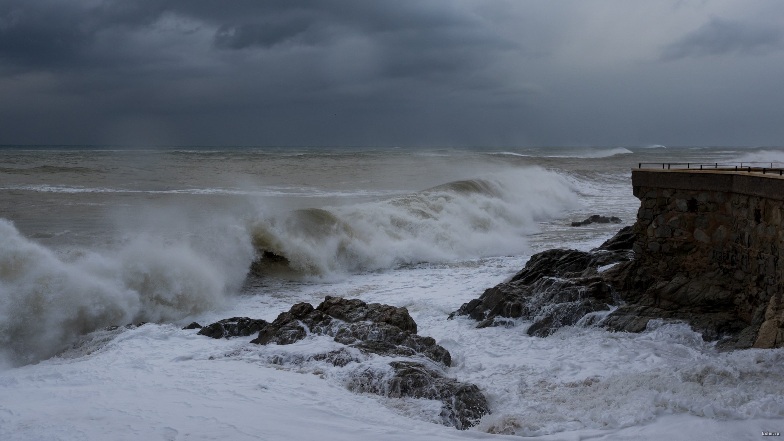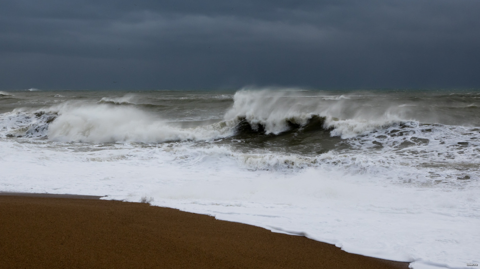 Похожие волны били в конце сентября 2015 в Мальграде. Но ветра такого точно не было. И вообще у этих волн какая то не линейная зависимость от ветра.