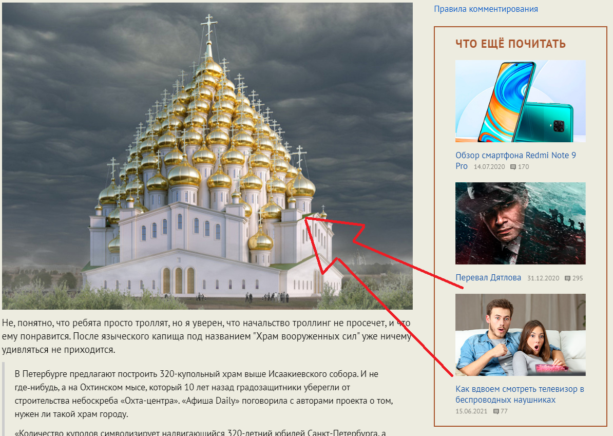 Слышали, что в Петербурге хотят построить 320-купольный храм? К счастью, это не настоящий проект, но «арт-манифестация» Вот чего хотели добиться ее авторы. (медуза)