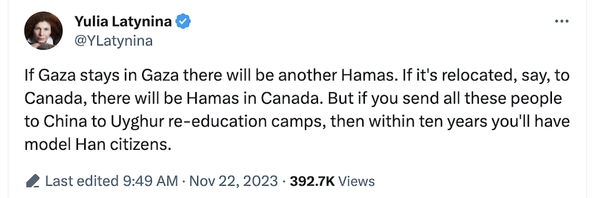 То есть убить практически всё мусульманское население как минимум ближневосточного и североафриканского происхождения. Ибо у них полный консенсус: если Израиль не улетит на Луну или ещё куда, то...