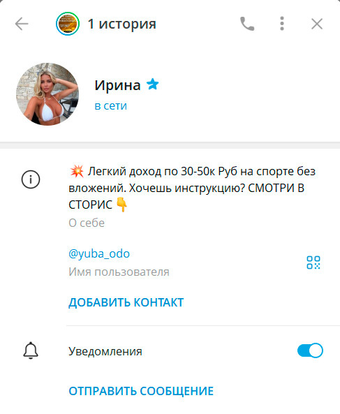 На самом деле мне даже далеко не всегда нужно открывать профиль, чтобы понять, что это какой-то спамерский бот. У них очень часто повторяются паттерны оформления профиля, и этих ботов видно за версту. На моем телеграм-канале, у которого сейчас 17239 подписчиков, за сутки приходит где-то пара десятков запросов о принятии в группу от всяких спамботов, и еще где-то пара десятков запросов как от обычных пользователей, так и от подозрительных аккаунтов, чьи запросы обычно отклоняются, причем когда эти запросы повторяются снова и снова, я понимаю, что не ошибся, потому что это именно боты, просто не такие явные, как "Ирина" с легким доходом или "София" с "голыми школьницами" (это все реальный спам).